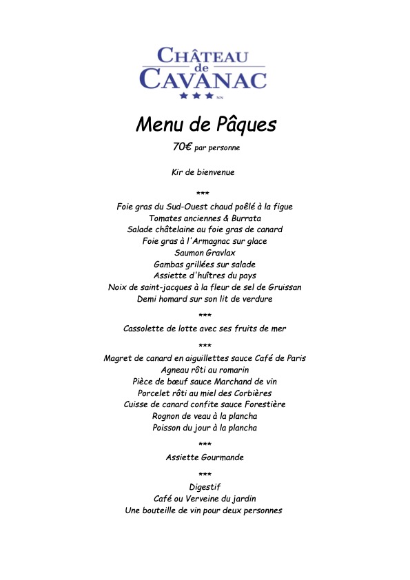 Le Menu de Pâques sera proposé au déjeuner le dimanche 5 avril 2026.